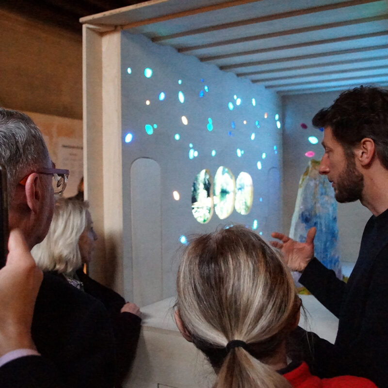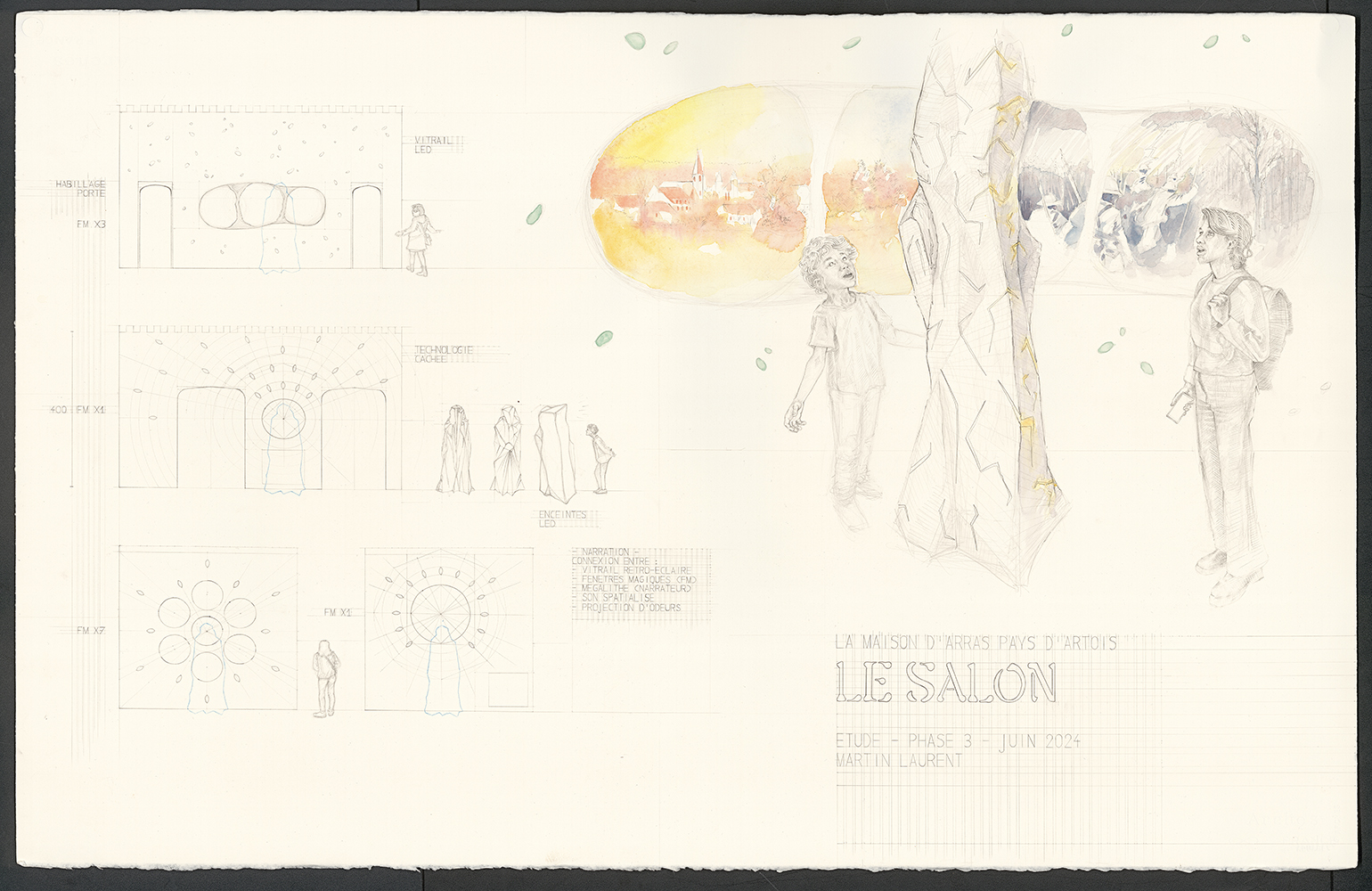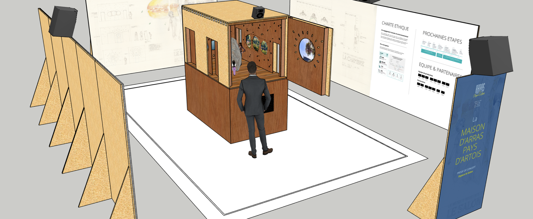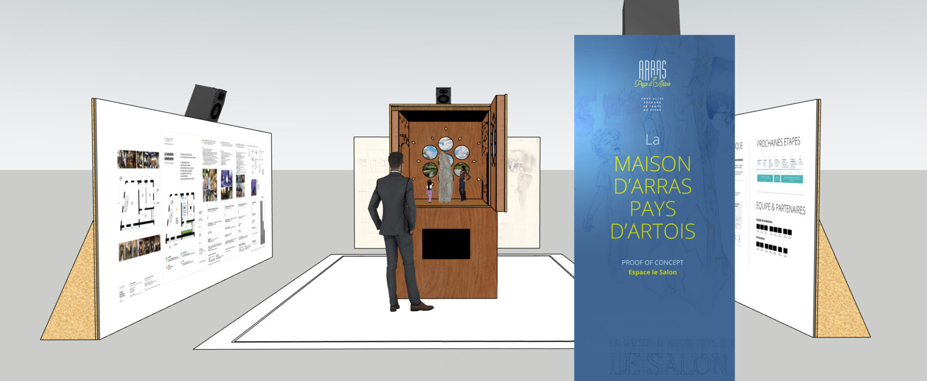 Cette expérience innovante nécessite une phase de POC (proof of concept) composée d’une étude technique et d’un prototype de l’espace final à échelle 1/3 pour valider la faisabilité et concevoir une solution technique robuste et efficiente. Cette phase réunit une équipe d’une dizaine de personnes. Une démonstration du prototype sous forme d’une exposition pédagogique a eu lieu le 25 mars 2025 dans le beffroi d’Arras en présence des élus, de la région Hauts-de-France et des parties prenantes.