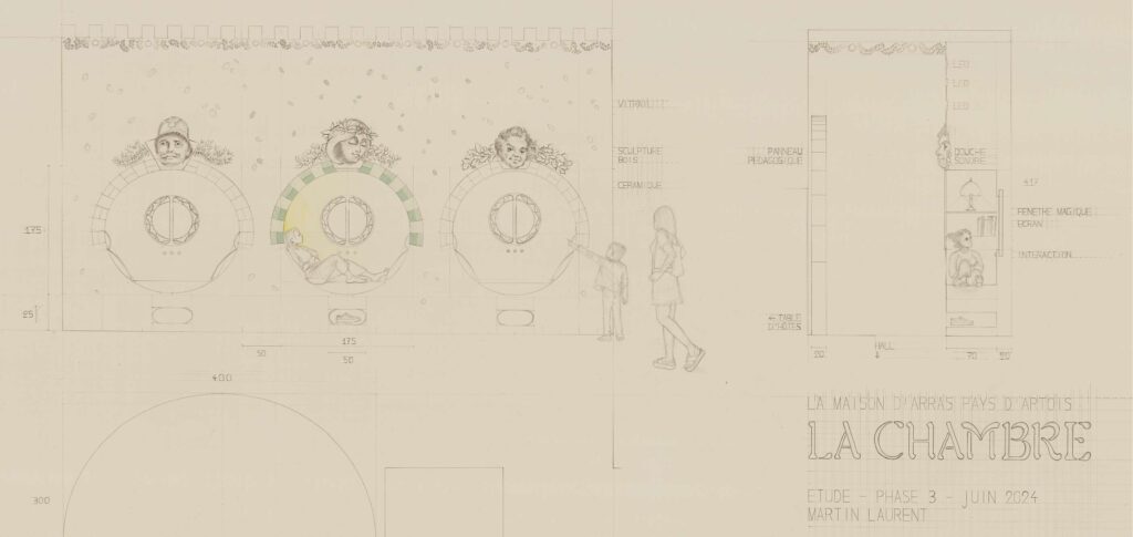 Dans une démarche artistique éco-responsable, le concept est dessiné sous forme de modello : une méthode de la Renaissance qui consiste à réaliser les esquisses à la main sur papier, en dessin et en aquarelle, à la lumière du jour.
